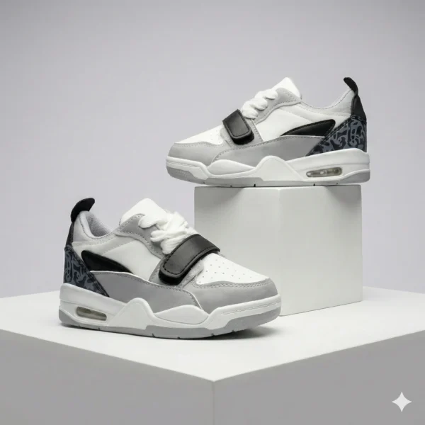 اختر الخياراتحذاء رياضي للأطفال — أبيض ورمادي بتصميم عصري