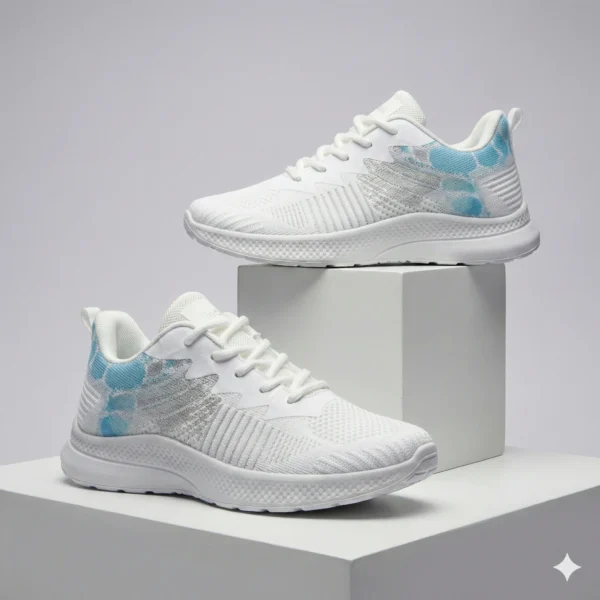 اختر الخياراتحذاء رياضي نسائي — أبيض بتفاصيل وردية وزرقاء